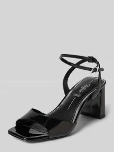 Sandały damskie Buffalo;Prostokątny kształt;Pasek ze sprzączką;Model ‘APRIL’;Obcas słupek;Lekko fakturowana podeszwa;Wysokość obcasa w rozmiarze 40: 8 cm