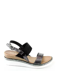 Sixth Sens Sandały w kolorze srebrno-czarnym na koturnie