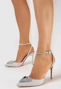 Srebrne Błyszczące Sandały na Szpilce z Ozdobnym Serduszkiem i Cyrkoniami Vifranc