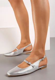 Srebrne Sandały Płaskie z Ekoskóry z Dwoma Paskami Zapinane na Sprzączkę Castalea