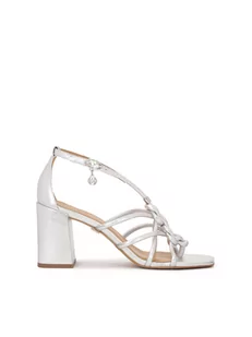 <p><strong>Sandały</strong> w eleganckim srebrnym kolorze osadzone na szerokim obcasie wykonane zostały z <strong>licowej skóry</strong>, która podkreśla ich oryginalny, perfekcyjny styl. Przeplatane paski pięknie układają się na stopie, a zabudowana pięta oraz pasek między palcami doskonale ją stabilizują. Srebrne sandały sprawdzą się jako dodatek do wieczorowych stylizacji. </p> <ul> <li>Wyściółka z miękkiej semianilinowej skóry