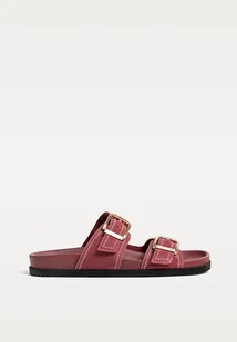 Stradivarius Płaskie skórzane sandały z klamrami Ciemnoczerwony 39