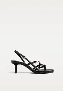 Sandały na obcasie z paskami na podbiciu. Ozdobne sprzączki. Dostępne w różnych kolorach. Zapięcie na sprzączkę wokół kostki. Wysokość obcasa 5,5 cm.