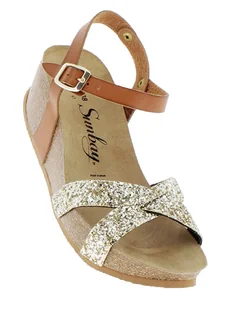 Sunbay Skórzane sandały "Pivoine" w kolorze karmelowo-złotym na koturnie