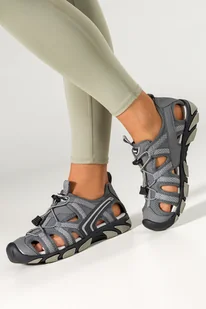 Szare sandały trekkingowe damskie na elastycznej bieżnikowanej podeszwie z regulowaną elastyczną sznurówką zakryta pięta jasnoszare wstawki Casu 2307-2W