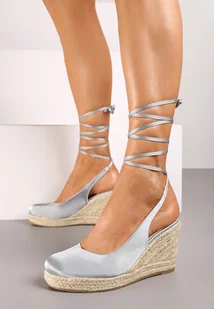 Szare Satynowe Sandały w Stylu Espadryli na Plecionym Koturnie Fasoise