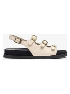 Skórzane sandały w kolorze kremowym - zapięcie: sprzączka - noski: otwarte - skórzana wkładka: ergonomicznie formowana - podeszwa: antypoślizgowa