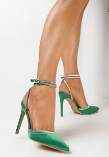 Zielone Sandały na Szpilce Ozdobione Drobnymi Cyrkoniami Nolsara