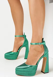 Zielone Sandały w Cyrkonie na Platformie i Słupku Saana