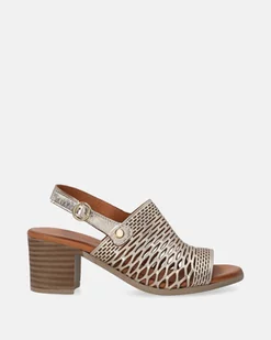 Stylowe sandały damskie wykonane z metalizowanej skóry w złotym kolorze. Ażurowa, nacinana cholewka zapewnia nie tylko efektowny wygląd, ale także świetną przewiewność i komfort w cieplejsze dni. Model posiada odkryte palce oraz pasek z regulacją na sprzączkę, co gwarantuje dobre dopasowanie do stopy. Stabilny obcas o strukturze imitującej drewno dodaje lekkości i letniego charakteru, jednocześnie zapewniając wygodę przez cały dzień. okrągłe, otwarte noski szeroki, komfortowy obcas pasek z tyłu ze sprzączką nacinana, ażurowa cholewka wkładki z miękkiej naturalnej skóry