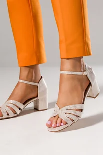Złote sandały błyszczące na słupku damskie z zakrytą piętą pasek wokół kostki skórzana wkładka Casu ER24X22-G
