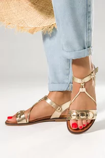 Złote sandały damskie model K24X6-G zostały wykonane z wysokogatunkowej skóry ekologicznej, co gwarantuje doskonałą jakość i dopasowanie do stopy. Odkryj ele...