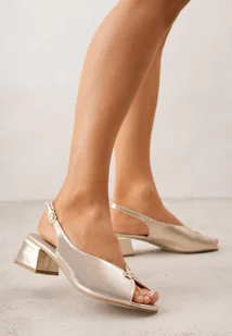 Złote Sandały na Obcasie ze Skórzaną Wkładką i Cyrkoniami Vylyra