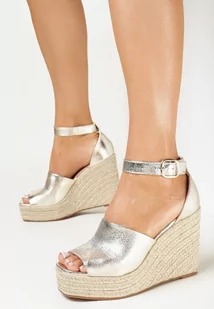 Złote Sandały na Wysokim Koturnie ze Sznurka Mirietto