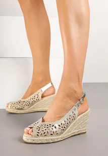 Złote Sandały w Ażurowy Wzór na Koturnie z Plecionki Valirna