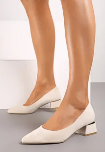 Beżowe Czółenka na Obcasie ze Skórzaną Wkładką ze Szpiczastym Noskiem Tialitha