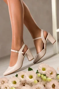 Beżowe czółenka Sergio Leone na słupku z odkrytą piętą skórzana wkładka HP553