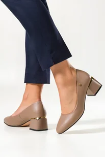 Beżowe czółenka skórzane damskie na ozdobnym klocku złota ozdoba Casu SL24X2-K-40