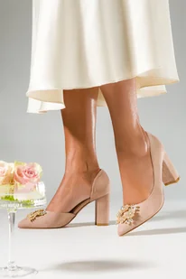 Beżowe czółenka damskie model D24X14-BE zostały wykonane z wysokogatunkowego zamszu ekologicznego, co gwarantuje doskonałą jakość, wygodę i dopasowanie do st...