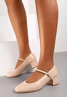 Beżowe Lakierowane Półbuty na Obcasie w Stylu Mary Jane ze Sprzączką Timavine