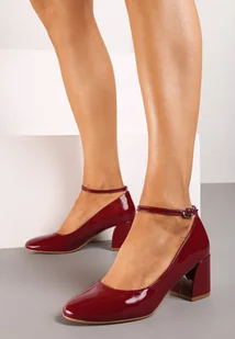 Bordowe Czółenka Lakierowane na Słupku Zapinane przy Kostce Dlitara