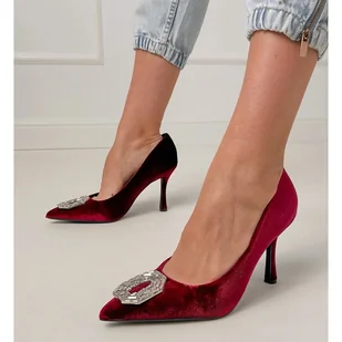 Odkryj elegancję i ponadczasowy styl z bordowymi czółenkami na szpilce! Te wyjątkowe buty, model G423 w odcieniu Wine, to must-have dla każdej kobiety, która ceni sobie klasę i komfort. Wykonane z wysokiej jakości weluru, czółenka nie tylko prezentują się olśniewająco, ale również zapewniają wygodę noszenia dzięki ekologicznej wkładce. . Czółenka charakteryzują się szpiczastym noskiem i eleganckim fasonem, idealnym na różne okazje od formalnych przyjęć po romantyczne wieczory. Ich zdecydowanym atutem są subtelne cyrkonie, które dodają blasku i wyjątkowego uroku. . Wysokość obcasa wynosząca 9,5