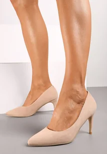 Ciemnobeżowe Casualowe Czółenka na Szpilce z Wkładką ze Skóry Naturalnej Cleinae