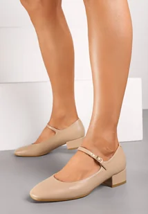 Ciemnobeżowe Czółenka na Obcasie w Stylu Mary Jane ze Sprzączką Kareoma