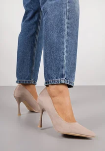 Ciemnobeżowe Szpilki Vices na Obcasie Typu Klepsydra ze Skórzaną Wkładką Elttime