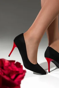 Czarne czółenka damskie na czerwonej szpilce skórzana wkładka Casu D25X8-B