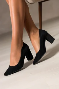 Czarne czółenka damskie Sergio Leone na słupku skórzana wkładka KY585