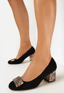 Czarne Czółenka na Zdobionym Słupku z Kokardą Flomes