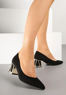 Czarne Czółenka Vices na Ozdobnym Słupku ze Skórzaną Wkładką Arvisel