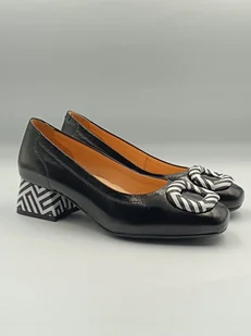 Czarne lakierowane czółenka z wyrazistymi akcentami to idealna propozycja dla kobiet, które lubią przełamywać klasykę nowoczesnym detalem. Wykonane z miękkie...