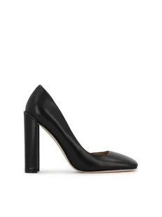 Czarne skórzane czółenka na geometrycznym słupku - 35