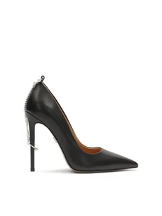 <p><strong>Czółenka</strong> osadzone na wysokim smukłym obcasie to klasyczny fason, który jest niezwykle kobiecy i zmysłowy. Minimalistyczne szpilki wyróżniają się ciekawym zdobieniem przy obcasie. Łańcuszek przymocowany do szlufki przy zapiętku oraz do obcasa nadaje obuwiu drapieżności i wyrazistości. Dla złagodzenia looku łańcuch można zdjąć. Ładnie wyprofilowana cholewka z gładkiej<strong> licowej skóry</strong> oraz nosek zakończony w szpic, korzystnie wpływają