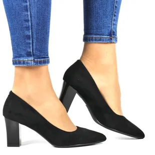 Czółenka Na Obcasie Słupku Nosek W Szpic Sergio Leone Pb403 Czarne Zamszowe