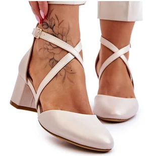 Czółenka Na Słupku Sergio Leone SK824 Perłowe Beżowe beżowy.