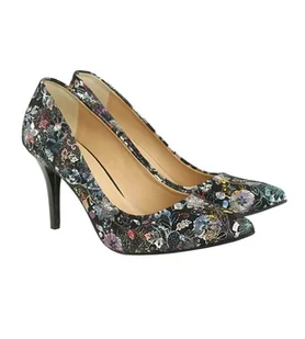 Czółenka Skórzane szpilki wysokie w kolorowe kwiatki (4893)
