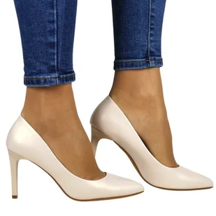 Czółenka Szpilki Sergio Leone 1339 Beżowe Perłowe