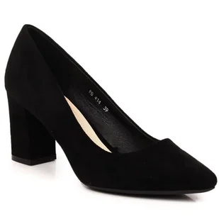Czółenka zamszowe na słupku Sergio Leone W SK403A czarne Właściwości: buty marki Sergio Leone doskonałe na co dzień i eleganckie spotkania wykonane z wysokiej jakości materiałów dla kobiet obcas 7. 5 cm uniwersalna kolorystyka Kolor: czarny