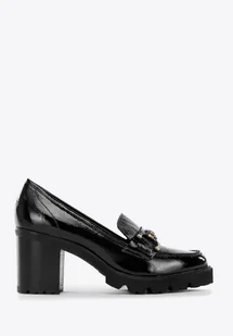 Czółenka ze skóry lakierowanej z klamerką czarne 38