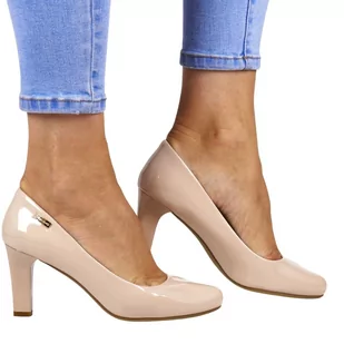 DAMSKIE CZÓŁENKA NA SŁUPKU NA OBCASIE SERGIO LEONE 1459 NUDE PAT LAKIEROWANE