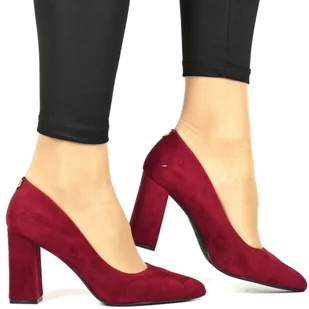 DAMSKIE CZÓŁENKA NA SŁUPKU SERGIO LEONE PB216 BORDOWE ZAMSZOWE