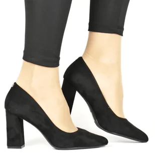 DAMSKIE CZÓŁENKA NA SŁUPKU SERGIO LEONE PB216 CZARNE ZAMSZOWE