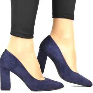 DAMSKIE CZÓŁENKA NA SŁUPKU SERGIO LEONE PB216 GRANATOWE ZAMSZOWE