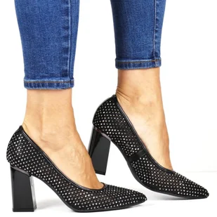Damskie Czółenka Ozdobione Cyrkoniami Półbuty Na Słupku Vinceza 62211 Czarne - VINCEZA