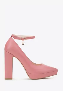 Damskie czółenka skórzane na grubym słupku różowe 39
