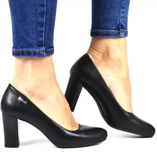 Czarne czółenka damskie Sergio Leone na słupku skórzana wkładka PB216-CA