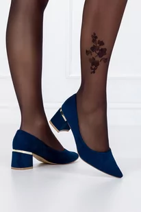 Granatowe czółenka damskie na niskim ozdobnym obcasie klocku skórzana wkładka Casu D212X6-N-37